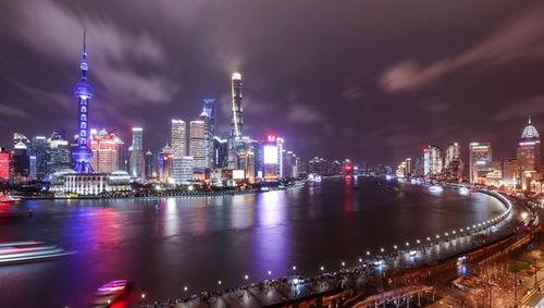 夜晚的上海,犹如一颗璀璨的明珠,熠熠生辉。你可以选择乘坐游船,夜游黄浦江,欣赏两岸的夜景。